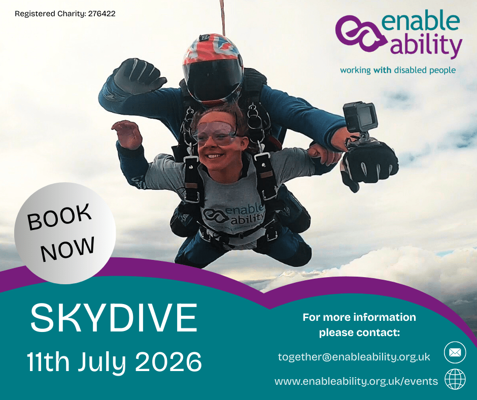 If you have a fundraising query or you’d like to discuss your charity skydive options in more detail, please contact Hollie, our Partnerships and Events Officer: together@enableability.org.uk/ 02392 671846