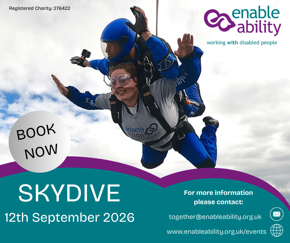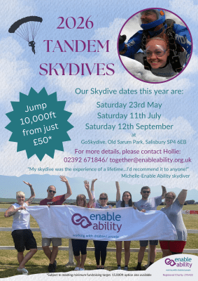 If you have a fundraising query or you’d like to discuss your charity skydive options in more detail, please contact Hollie, our Partnerships and Events Officer: together@enableability.org.uk/ 02392 671846